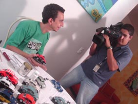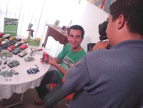 Beto Cridê mostrando a miniatura nº1 (baratinha).